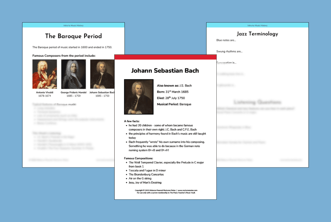 Visit the shop for individual sheet music, theory packs, history activities, and seasonal resources.