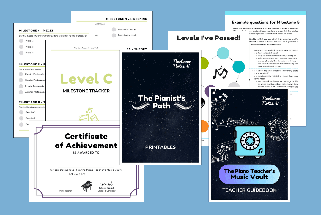 From 'The Pianist’s Path' framework to off-the-bench games, everything in the Vault is born from my own teaching practice in my studio. Tried, tested, and designed to be the comprehensive resource I always wished I had. I’m here to make your teaching life easier and your students’ music life better.
